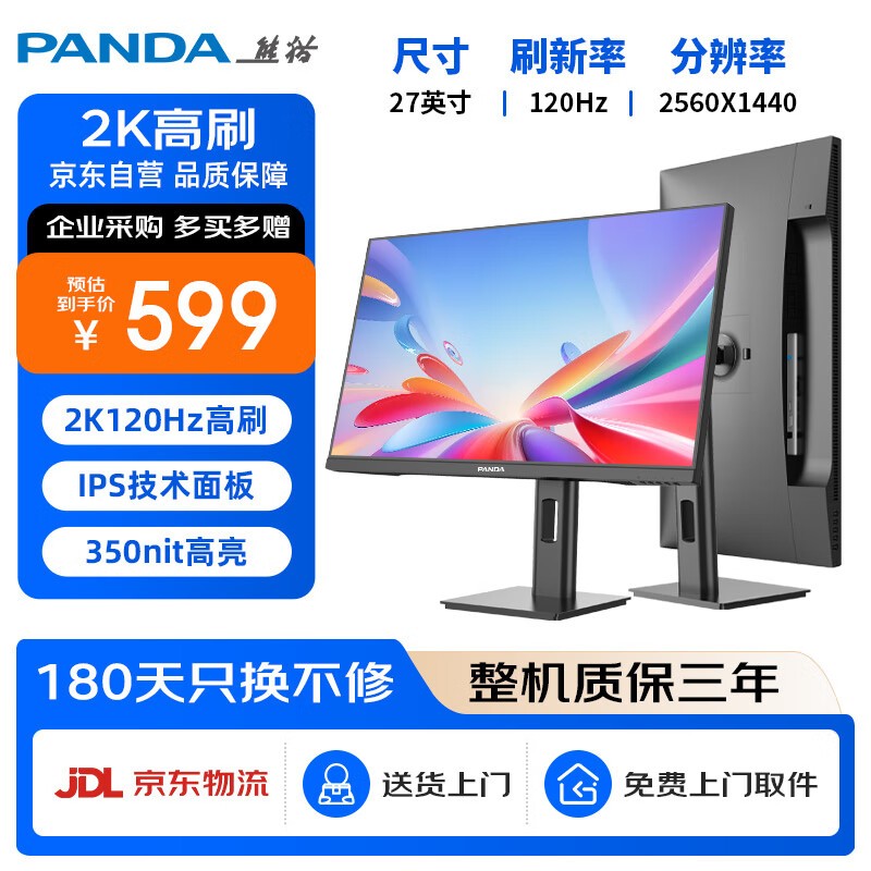 现在京东熊猫 Y27Q4显示器活动售价599元,部分地区有国补,下单1件,实付低至509.15元,相比原价599元,能节省不少费用,非常值得入手。