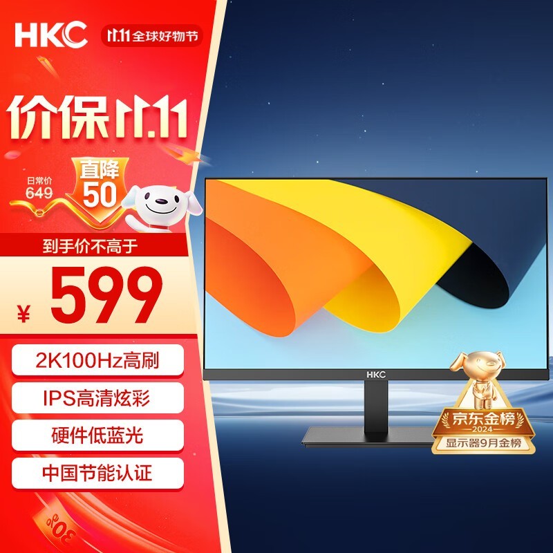 目前HKC S2716Q京东活动售价仅599元,叠加200减20优惠券及京东会员专属200减10福利,部分地区还可享国补政策,实付价低至483.65元,相比原价直降超百元,性价比出众,机会难得,抓紧入手!