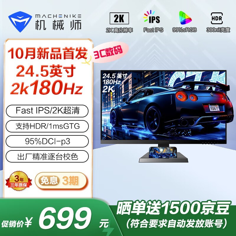 现在在京东自营,机械师 MZQ25F180显示器活动售价699元,参与满1元打9折活动,下单1件,实付低至629.1元,相比原价十分划算,别错过这个入手的好机会。