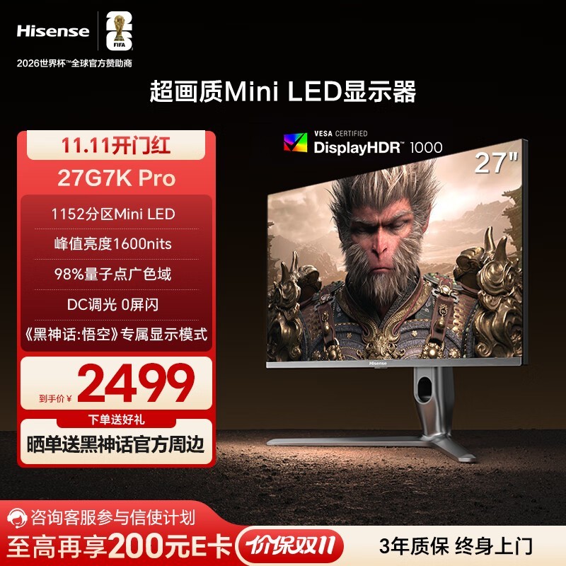 海信 27G7K-PRO 27英寸 1152分区MiniLED 广色域 FastIPS DC调光 4K160Hz 显示器 黑神话:悟空