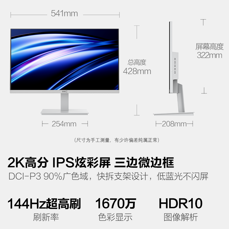 HKC V2419QW 23.8英寸 QHD IPS办公显示器 京东到手 清晰视界舒适办公