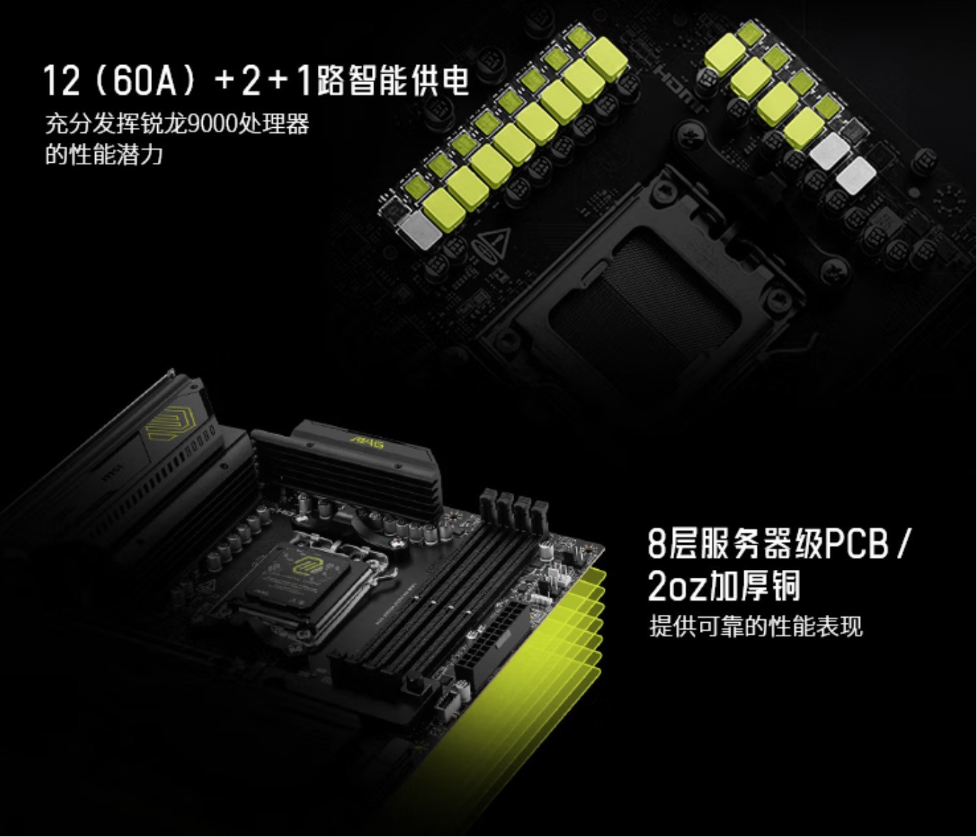 微星 B850M MORTAR WIFI采用12+2+1相供电设计,并搭配高品质电容与电感,为处理器提供稳定充足的供电支持,轻松应对大型游戏、视频渲染等重载任务。同时,微星 B850M MORTAR WIFI主板采用2Oz铜箔的8层服务器级PCB板设计,进一步优化了电气性能,降低信号干扰,提升了整机的运行稳定性和耐用性。