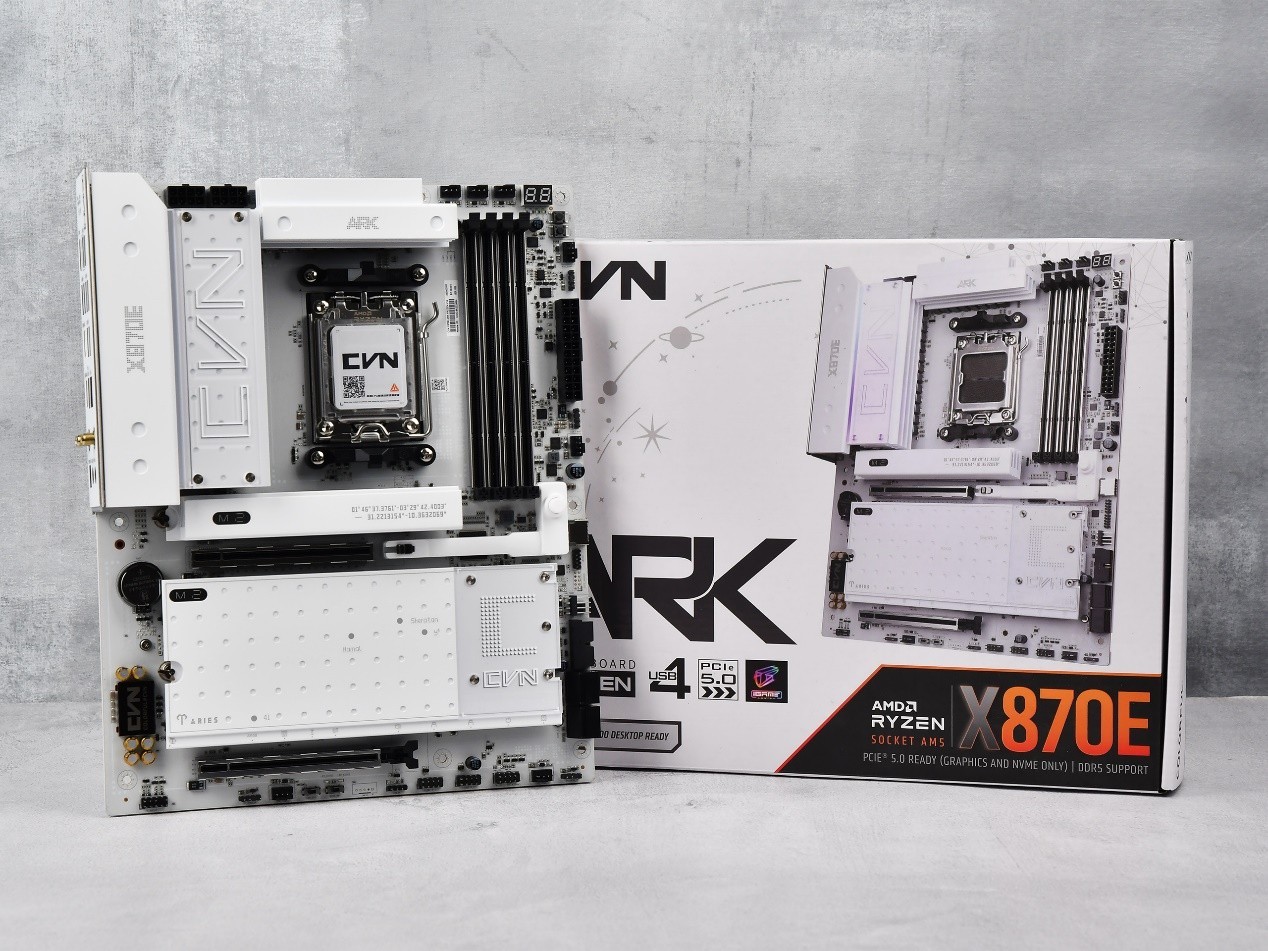 在追求极致性能与个性化视觉的DIY装机领域,如何为AMD锐龙X3D系列处理器选择一款既能充分释放其游戏潜能,又能完美融入白色主题“海景房”机箱的主板,是许多玩家面临的课题。近期,国内一线板卡品牌七彩虹强势回归AMD高端主板市场,推出了其首款基于X870E芯片组的旗舰产品——七彩虹 X870E ARK方舟主板(全称CVN X870E ARK FROZEN V14方舟)。这款主板不仅以独特的“纯白星舰”美学设计惊艳亮相,更凭借扎实的16+2+1相80A供电、对高频DDR5内存的强力支持以及丰富的PCIe 5.0扩展能力,成为驾驭锐龙9 9950X3D等旗舰处理器的理想座驾。本文将从设计、性能、扩展与体验等多个维度,深度解析这款旨在“释放X3D野兽性能”的纯白旗舰主板。