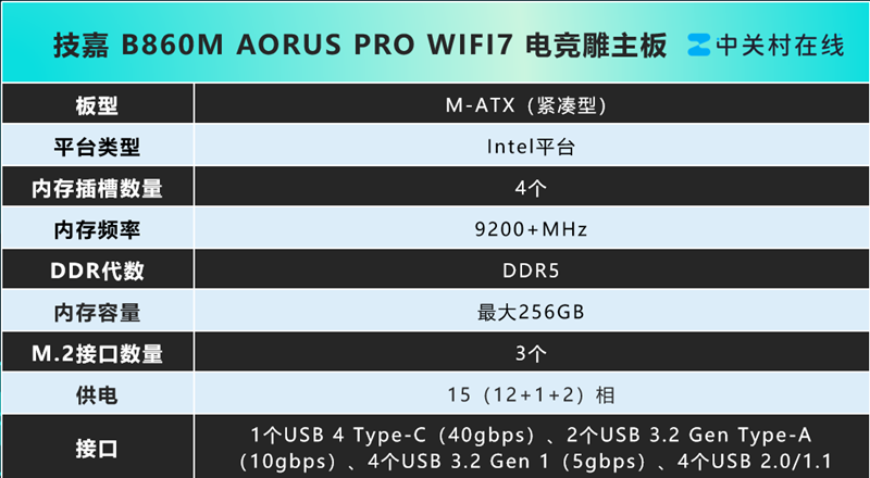 技嘉 B860M AORUS PRO WIFI7 电竞雕 mATX B860芯片组 DDR5 PCIe 5.0 2.5G+Wi-Fi 7 主板