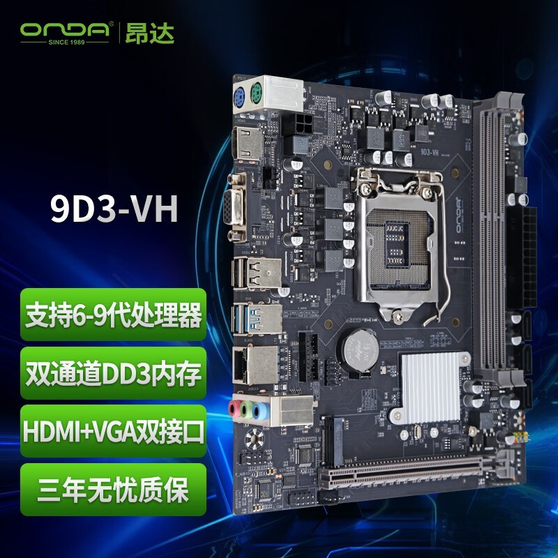 昂达 9D3-VH 支持八 九代酷睿双通道DDR3并配4个SATA3接口