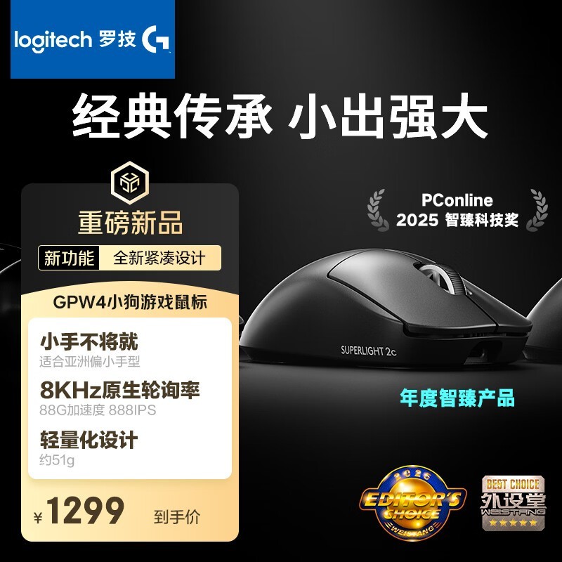 罗技 GPW4 轻量化无线游戏架构 HERO 25K传感与LIGHTSPEED极速响应