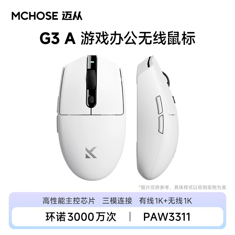 迈从 G3 A 白色 无线 游戏鼠标 对称工学高敏追踪低延迟长续航