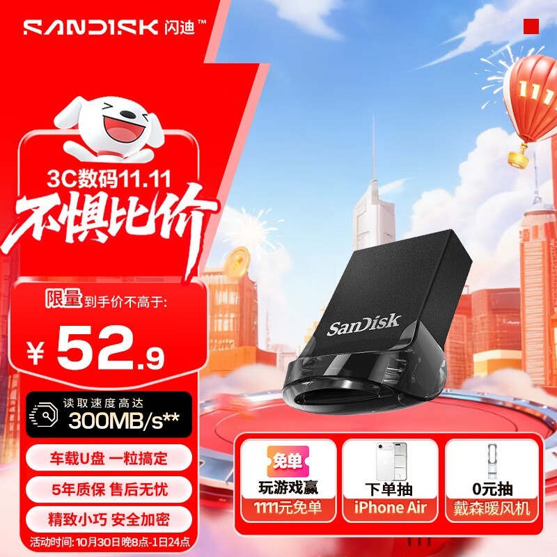 闪迪 CZ430酷豆USB 3.1 U盘黑色64GB现正热卖中,原价52.9元,当前京东活动售价低至52.9元,学生用户还可领取10-3专属优惠券,下单1件实付仅需49.9元,到手价历史新低。闪迪 CZ430 U盘小巧如Nano无线鼠标接收器,配备挂环设计,随身携带方便不易丢失,插入电脑几乎不占空间,也特别适合车载环境使用。闪迪 CZ430支持USB 3.1接口,标称读取速度高达130MB/s,写入速度达40MB/s,内置高速缓存技术,在传输1~2GB大文件时写入速度可提升至100~150MB/s,大幅提升传输效率。闪迪 CZ430 64GB大容量轻松应对日常办公、学习及影音存储需求,是学生党和职场人士的理想之选,趁着优惠抓紧入手!
