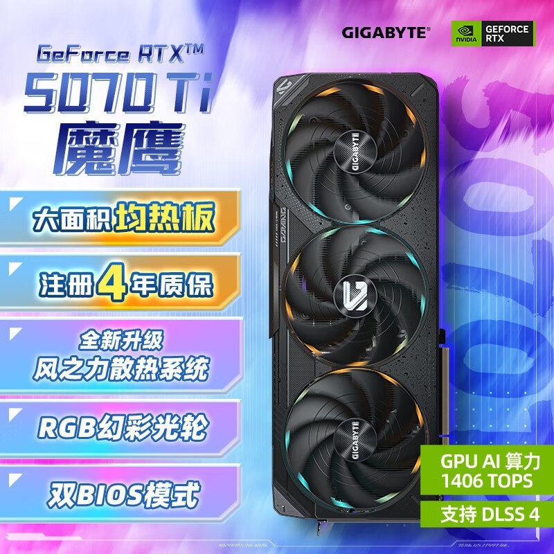 技嘉 RTX5070Ti Gaming OC 16G DLSS4 电竞游戏AI智能学习
